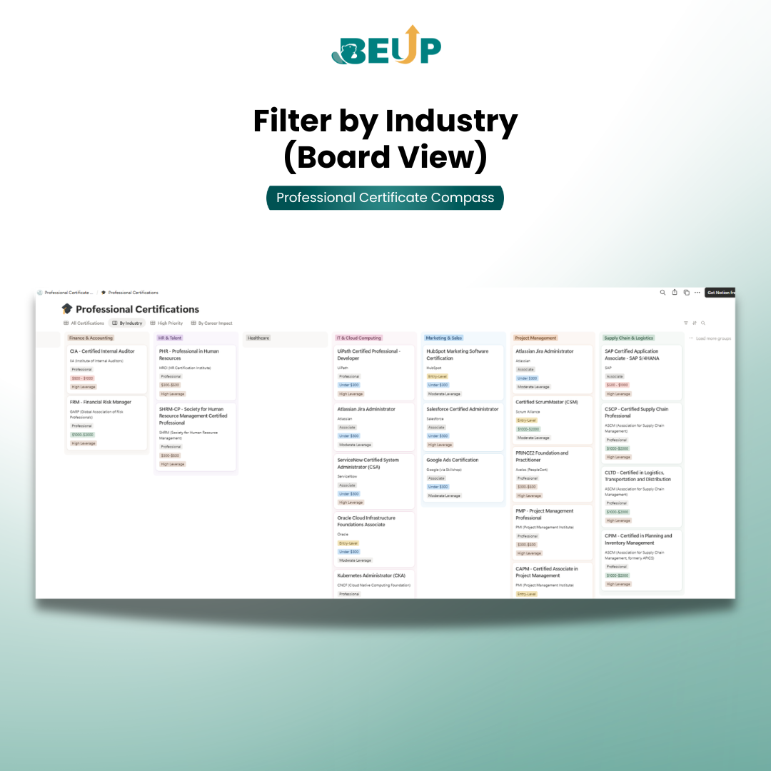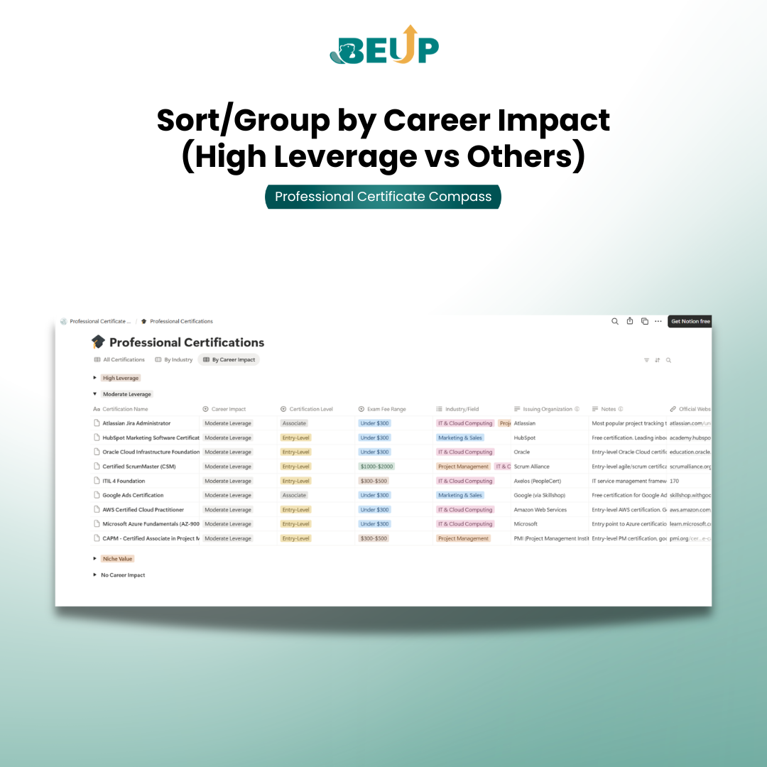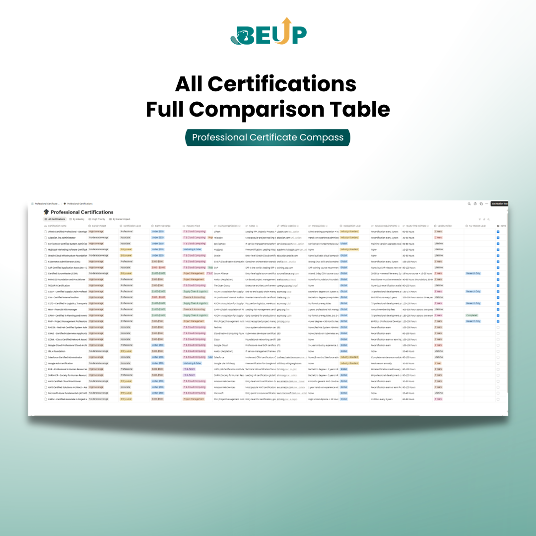 Certificate Compass – Lộ Trình Chứng Chỉ Nghề Nghiệp & Kế Hoạch Học | Notion Template